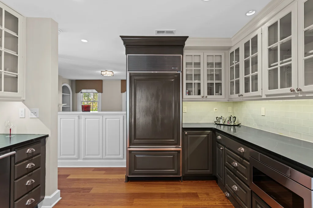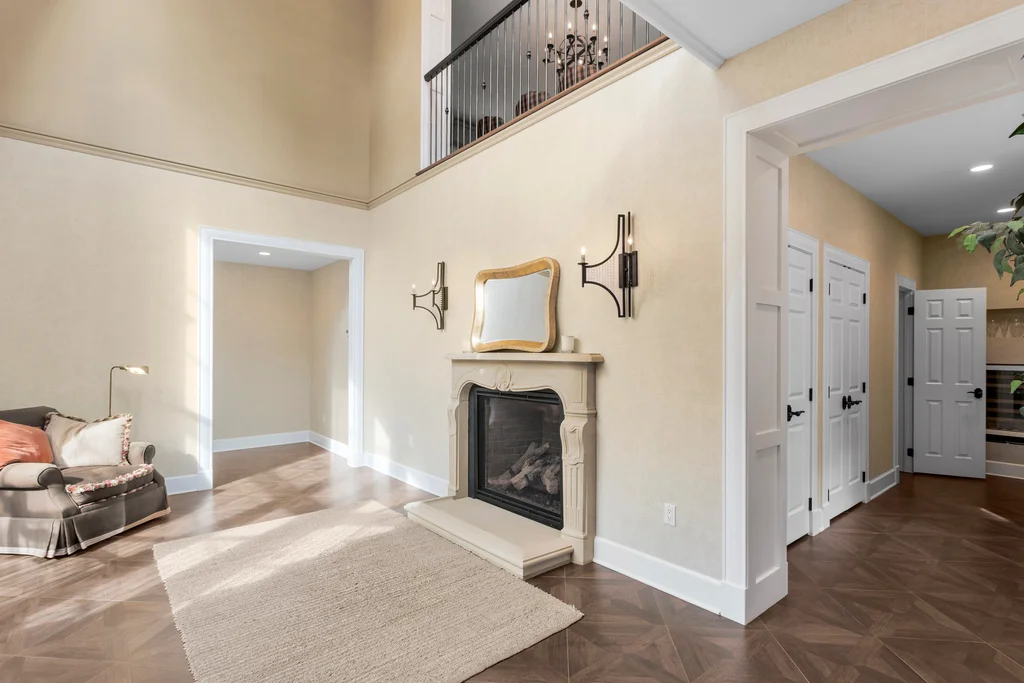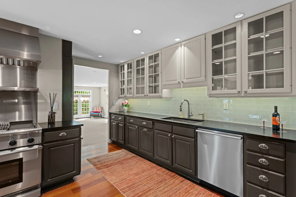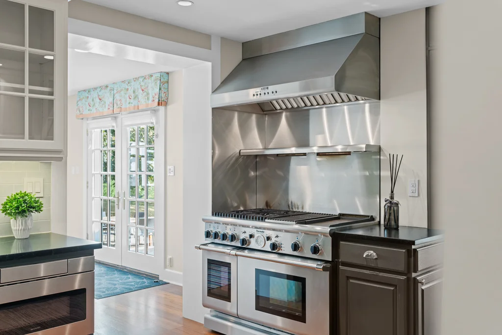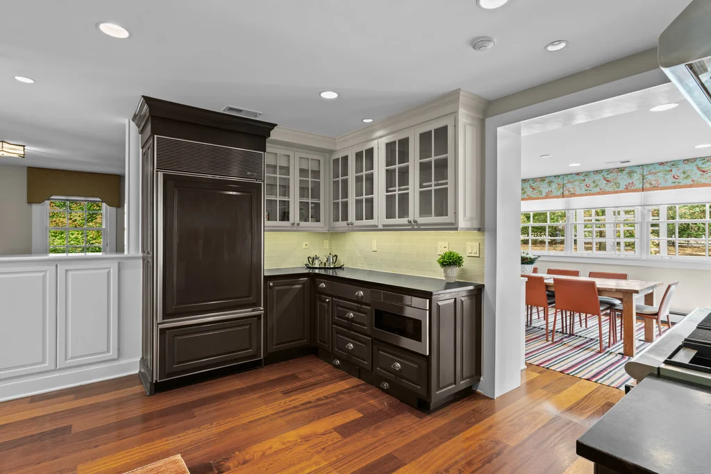 A sweeping drive leads to the front entry, where natural stone, stucco accents, and manicured grounds create an immediate sense of arrival. Inside, hardwood floors extend through the main living areas, complemented by tall ceilings, abundant windows, and a layout designed for both gathering and retreat. The kitchen stands out as a true centerpiece, featuring professional-grade appliances, generous counter space, and a bright breakfast nook that overlooks the backyard.