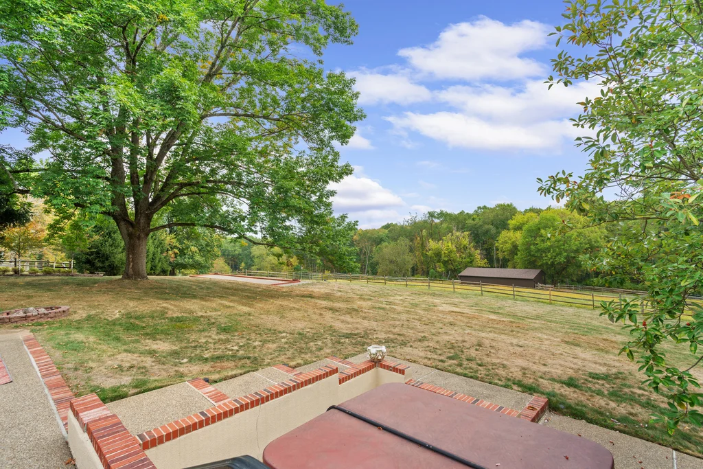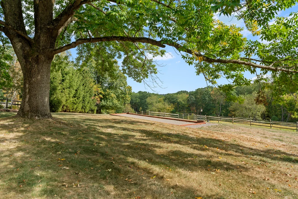 Outdoors, the property shines with wide-open lawns, a bocce court, and a horse barn with water and electricity—perfect for equestrian use or hobby farming. The three-car integral garage adds everyday convenience, while the acreage provides ample room for future enhancements such as a pool or expanded gardens.